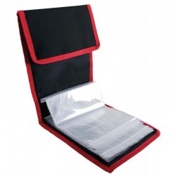 Presenta 2 tasche (1 interna ed 1 esterna) e 5/10 “buste” in PVC extra forte adatte come porta esche o porta finali.