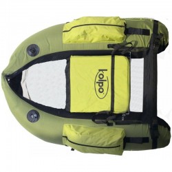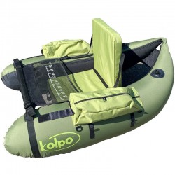Belly Boat con un grande assetto idrodinamico, ottima velocità di spostamento, seduta molto alta in schiuma di Poliureteno extra galleggiante e schienale in Poliuretano rigido per migliorare il confort di pesca.
