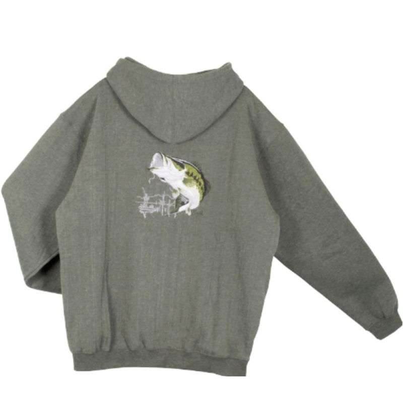 felpa pesca con tasca frontale a canguro. Ha un ricamo sul retro a forma di bass e un ricamo frontale con il logo Al Agnew.