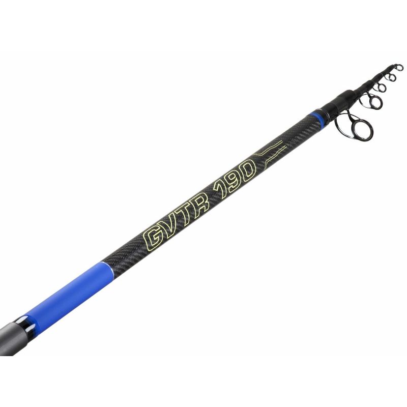 LUNGHEZZA MT. 4,40 La GVTR è una telecopica o meglio una “super telescopica” per lanci non troppo lateralizzati, side in primis. Realizzata in carbonio HR miscelato con ottimali di lancio 130-170g consente anche leggeri ground con 125 g , ottima sensibilità e progressione.