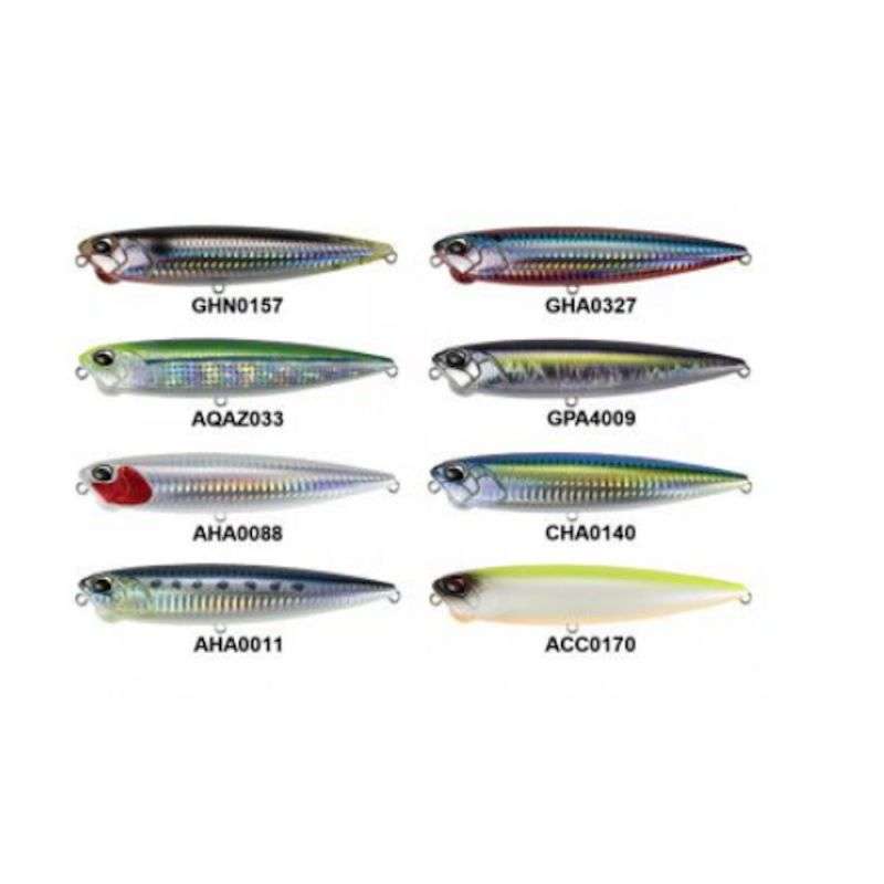 Grazie al disegno del corpo slanciato si ha un'azione di nuovo "DOG WALKING" vivace e compatta. Intessante la sfera sotto il muso che migliora le prestazioni di rotazione per un movimento più fluido e rotondo. Recuperando il filo velocemente, dopo che il DOG WALKING è al massimo della velocità, il pencil spruzza durante brevi immersioni e riemersioni. Quando il peso mobile interno sbatte nell'alloggio nella sezione di coda crea un suono alto come un CLICK. Questo suono (2 KNOCK RATTLE SOUND) richiama il predatore in varie condizioni, dall'acqua cristallina a quella fangosa. DUO REALIS PENCIL 100 SW LIMITED (100mm/14.3g) è equipaggiato di ancorette stagnate