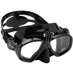 Maschera basata sul modello Focus che incorpora nella montatura un supporto per Action Cam. Disponibile in silicone nero e trasparente. La montatura è rinforzata in corrispondenza dell’aggancio e include la vite per il montaggio e la regolazione della Action Cam. La fibbia è flessibile e a regolazione micrometrica.