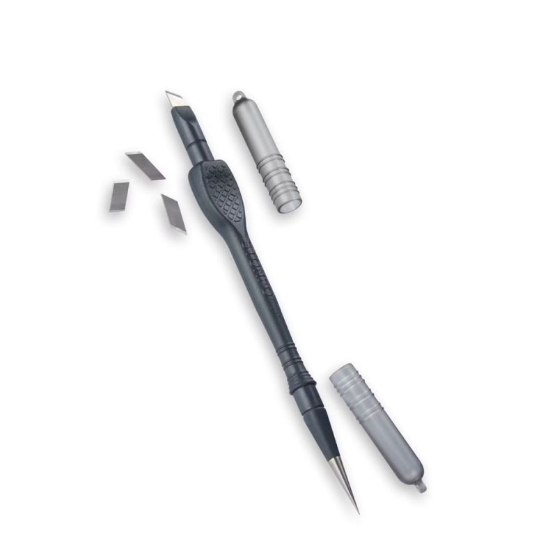 Taglierino di precisione indispensabile per la finitura delle vostre mosche. All’altra estremità l’utensile è munito di una corta ed acuminata punta in acciaio inox utile durante la costruzione. Fornito di tre lame di ricambio.