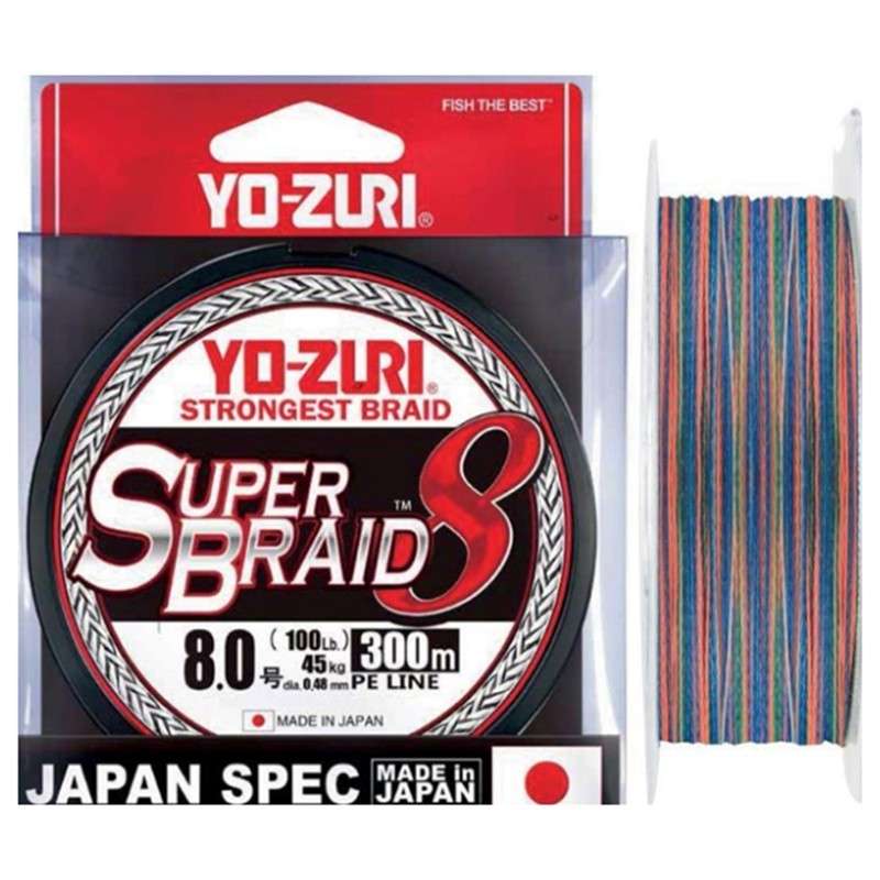 Trecciato Yozuri Dyneema PE Superbraid DG molto morbido e setato, multicolor in bobina da 300 metri adatto alla pesca a Spinning, Eging e Bolentino.