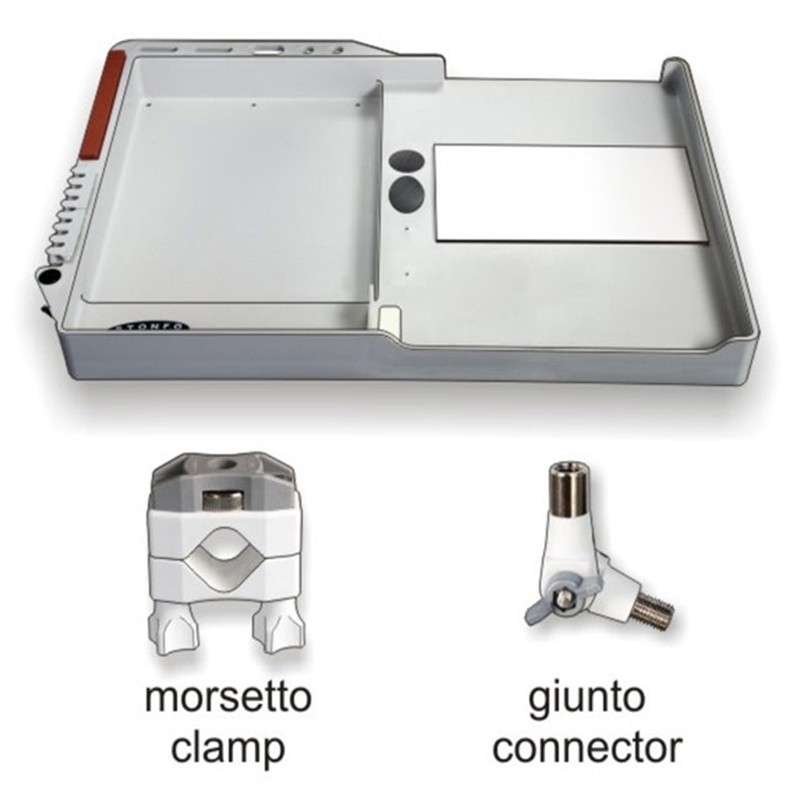 Serbidora in materiale plastico resistentissimo perfettamente smussato e privo di angoli taglienti. Munita di nicchia per contenere vaschette porta-esche e minuteria varia in modo stabile e sicuro.