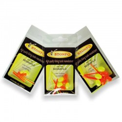 Segna-filo ideale per la pesca alla trota in torrente nei colori giallo e rosso fluorescente.