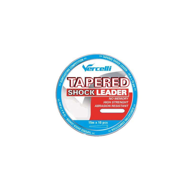 Pacchetto di leader conici da 15 metri, appositamente studiati per il surf casting. Realizzati in copolimero di alta qualità con un'eccellente resistenza al nodo e all'abrasione, terminano con un potente diametro di 0,57-0,70 mm; i primi 5 metri sono assottigliati, aumentando dal diametro iniziale fino al diametro d'urto per gli ultimi 10 metri, ammortizzando perfettamente l'impatto anche dei lanci più duri.